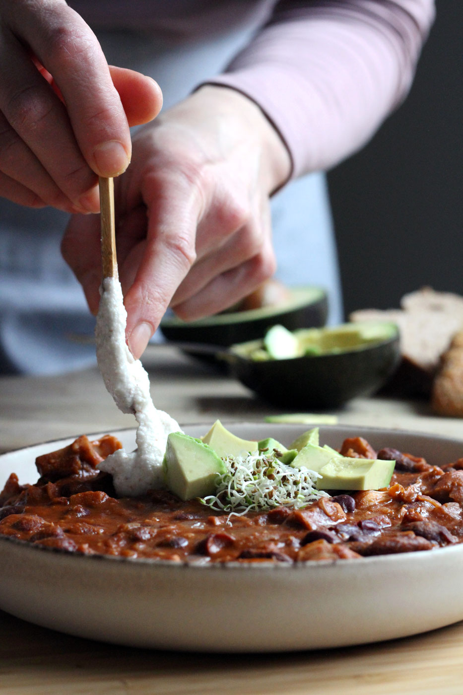 - All done! Serve with vegan sour cream, chopped herbs, tomatoes and avocado, if desired.
